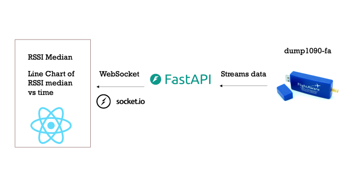 I built my app using a FastAPI backend and React frontend component. I used TypeScript to streamline error checking for the React app. FastAPI continuously reads ADS-B signal data from dump1090 (decoded data from software defined radio), performed the median calculations on the data, and streamed that data to React using a WebSocket connection. The WebSocket connection was implemented with the Socket.io library and FastAPI was served by Uvicorn, an asynchronous web server implementation.