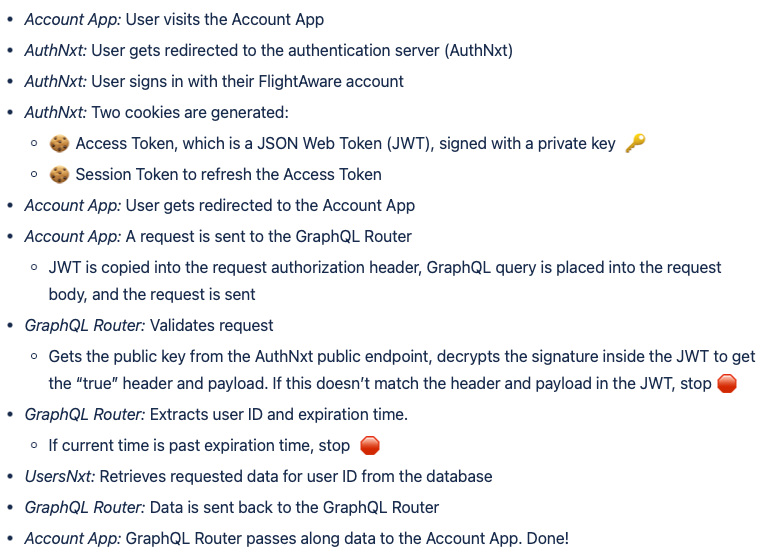 FlightAware’s WebNxt initiative is more than just frontend - it includes backend, too! In parallel with my work, two engineers working on the backend - Gabrielle Toutin and Gerald Burkholder - developed UsersNxt, a new GraphQL service for all user data. I used the urql npm package to interface with UsersNxt via FlightAware’s new GraphQL Router, which implements a federation of subgraph microservices (UsersNxt being one of them). A GraphQL API has a number of advantages over the more traditional REST API: