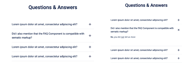 The FAQ section was another component that had its own interesting challenges. This component was built purely with CSS and no JavaScript. The animations to reveal the answer to a question while closing any other open questions was all done through CSS. It was very tempting to reach for a JavaScript library, but I knew HTML/CSS was capable of handling this interactivity. Ultimately, creating it from scratch without JavaScript was not just a rewarding challenge to tackle, but also a way of enhancing the overall web experience: