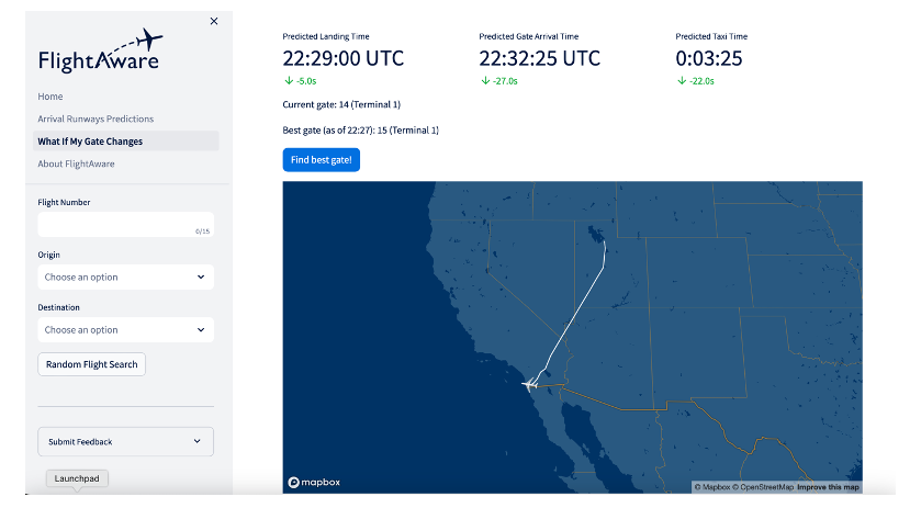 During my time at FlightAware, I developed an API for the “What If My Gate Changes” feature on Foresight Labs, which I named “FLAPI”. It makes connections directly to Redis and Triton servers to fetch metadata, feature vectors and prediction quantiles to return predicted taxi-in times for a hypothetical gate change that occurs for a specific flight.
