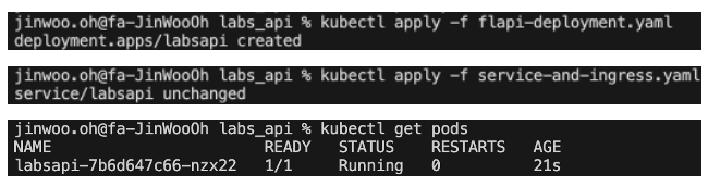 Combining the service and ingress yaml files into one, I used the “kubectl apply” to expose my application to port 8125, which is now accessible to all internal members of FlightAware on flapi.k.flightaware.com.