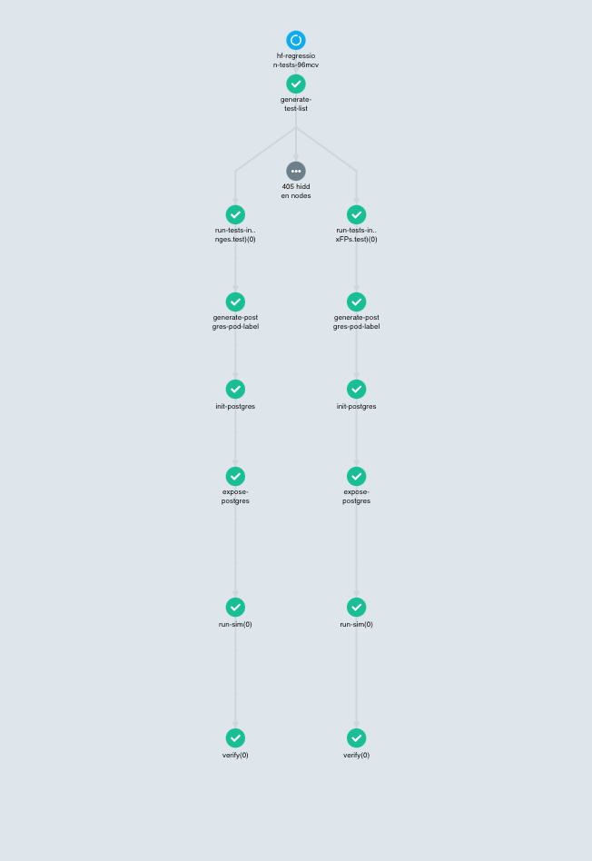 One notable downside of Redeye is that it is currently far less capable of allowing a user to diagnose the test failures in the cloud than hf_regression_tests on-prem. The primary reason is that each PostgreSQL pod will be terminated by Argo as soon as the corresponding 6-step vertial branch has finished. This means that the tables in PostgreSQL such as “flightplans” will cease to exist for the user to run the SQL queries against to understand why some tests failed. To work around this limitation, the user is encouraged to use hf_regression_tests on-prem instead where the user can run a small number of tests quickly and not worry about PostgreSQL being deleted. Therefore, we have a clean separation of responsibilities where Redeye is sort of a sledgehammer that can run all tests faster but is less capable of allowing the user to diagnose individual test failures whereas hf_regression_tests on-prem takes twice as long to process all tests but provides better support for investigating test failures.
