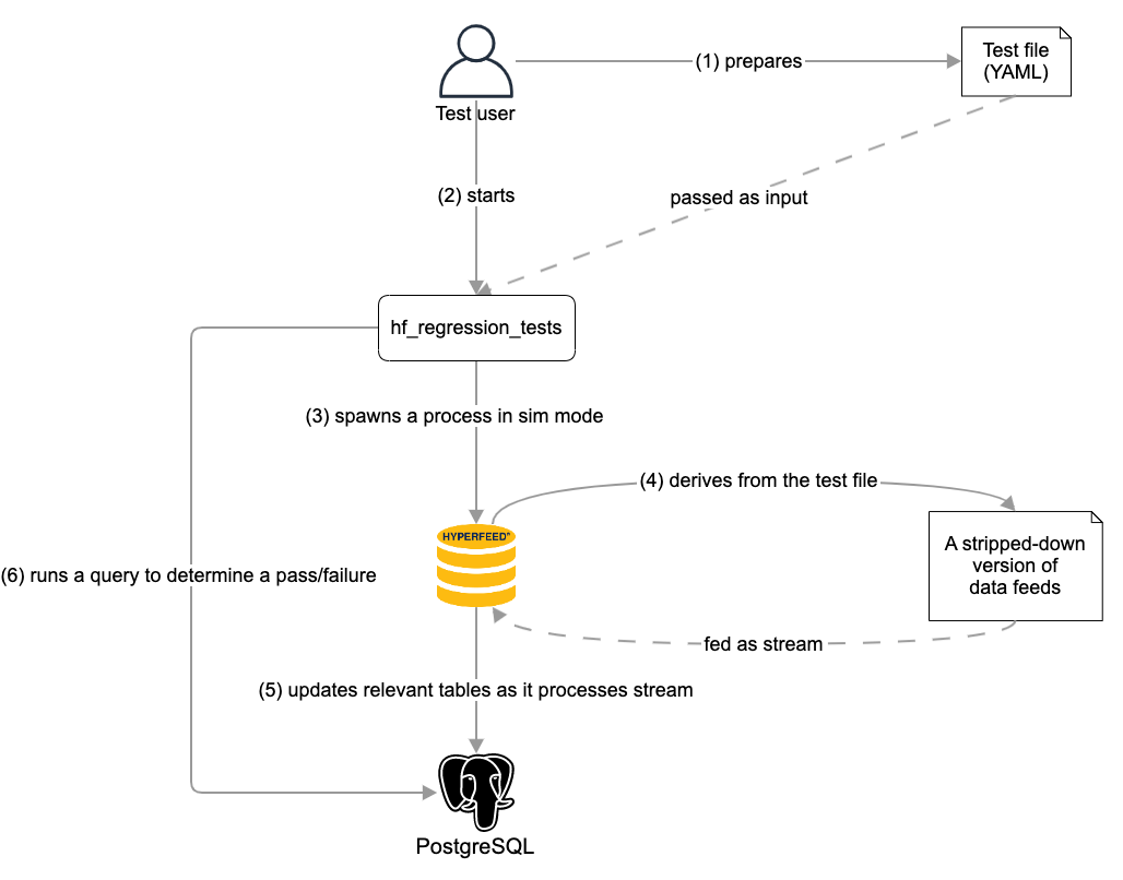 - hf_regression_tests spawns a HyperFeed process in simulation (sim) mode.