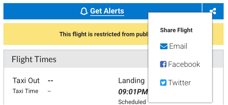 There are a few specifics of this view of the flight page to be considered when testing. First, the flight history section of the flight page isn’t visible in this view, so that only this one flight’s information is shared. The amount of information visible via the link will also depend on the user viewing it. If the person you’re sharing it with doesn’t have a FlightAware account, they will only see the basic information about the flight that they would see on any publicly visible flight page when not logged in and will have restricted access to information like flight layers and runway information. Whenever changes to the flight page are made, this view needs to be tested to ensure that the basic functionality remains intact, and that the various rules restricting it remain in place.