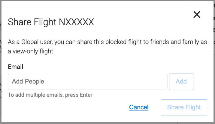 One other way that a global user can share a blocked flight with another user is to use the “Share Flight” option on the flight page. When you share a flight using email, it will include a link to the flight page that allows anyone to view the flight, no matter its block status.