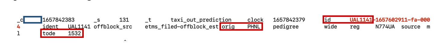 Finally, predictions are written to a daystream feed through an endpoint program that fuses data sent over a TCP connection into a timestamped TSV file. Below is an example of a tab-separated prediction message: