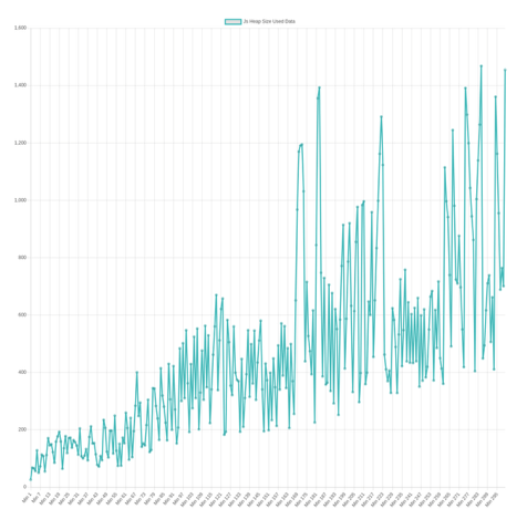 We collect these metrics during our test runs and then use the data collected to plot a chart to demonstrate the JSHeapUsedSize over the duration of the test.