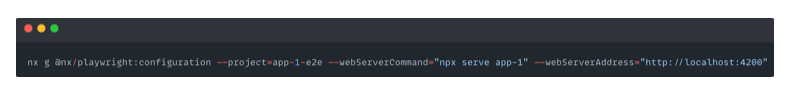 This command created an e2e tests folder adjacent to existing app-1. Since I wanted to run my tests against the local development server, I passed the webServerCommand and webServerAddress optional arguments.