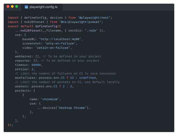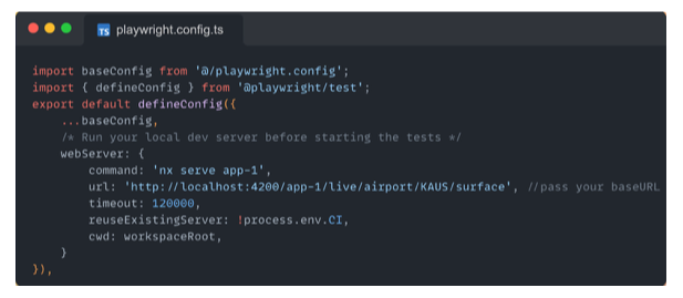 Did you notice something on line 2 in the code snippet above? Well, that’s the root-level baseConfig I created for all my apps. This type of configuration abstraction helps us maintain common settings leveraged by e2e tests and avoid writing repetitive boilerplate configurations across different apps. Pretty Neat!