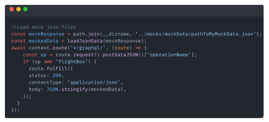 For instance, the following code intercepts a graphql request for flightBox operation and injects mock data in real-time to generate an expected flight within the flight card. Depending upon the operation, we may also use it to render an expected flight path on the map.